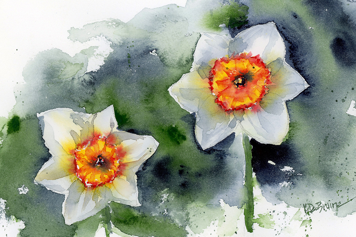 Two white daffodils with bright orange and yellow centers. Available as archival quality prints in a variety of sizes.